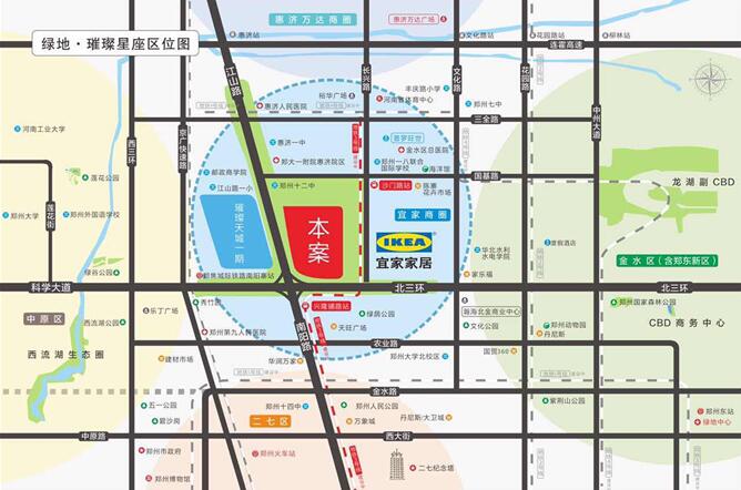 綠地璀璨星座雄踞城市南北中軸金北環(huán)與江山路黃金交匯處,惠濟(jì)區(qū)、金水區(qū)、高新區(qū)三區(qū)交界,占據(jù)惠濟(jì)區(qū)龍頭門戶。項(xiàng)目緊鄰黃金北三環(huán),周邊快速路、高速路、主干道多維路網(wǎng)環(huán)繞,公交、BRT、地鐵便捷近鄰,通達(dá)性極高,屬于三環(huán)外城市交通最發(fā)達(dá)的區(qū)域。