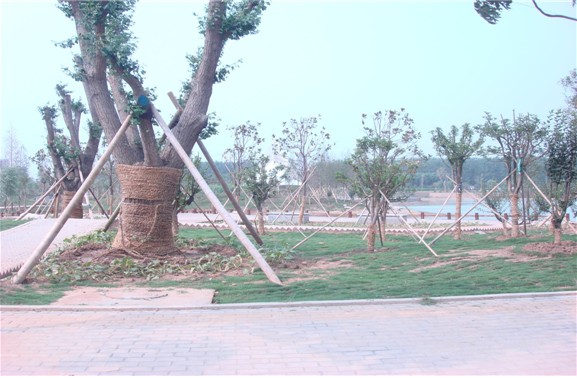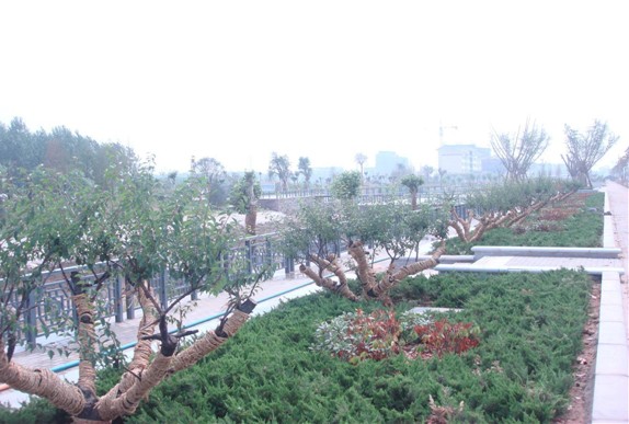公園里主要以梅樹(shù)為主再輔以其他植物形成綠化景觀