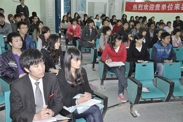 下午2:30,是尚正行與校方約定的專場招聘時間,2:10張經理趕到學校與有關負責老師和書記見過面之后就直接趕到了招聘現場,學校的趙老師已將會場安排妥當(在此特別感謝我們的趙老師),參加招聘的同學們也已陸續(xù)進場,安靜的教室馬上被同學們和我們的工作人員溝通和討論的聲音所占滿。