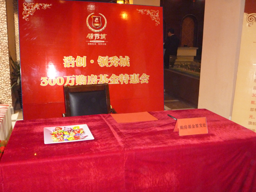 12月18日:由尚正行代理的浩創(chuàng)•領(lǐng)秀城舉辦了300萬購房基金、數(shù)百箱購房禮品齊放送活動。凡當天大定客戶都可獲得購房基金和價值三百余元的一套禮品,當場贈送。