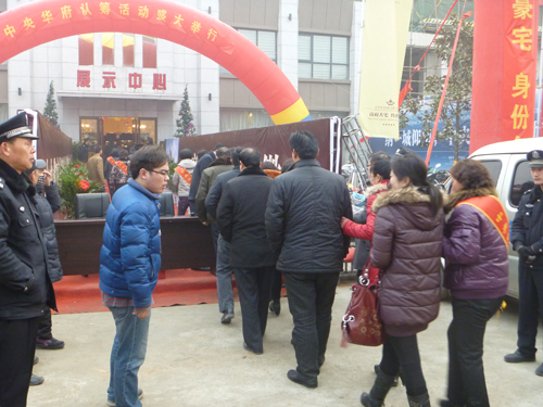 2012年1月1日上午7點(diǎn):中央華府售樓部門前停放著十輛豪華大巴,但是這些大巴車今天充當(dāng)?shù)膮s不是運(yùn)輸?shù)慕巧?,而是中央華府盛大認(rèn)籌的等候區(qū)。