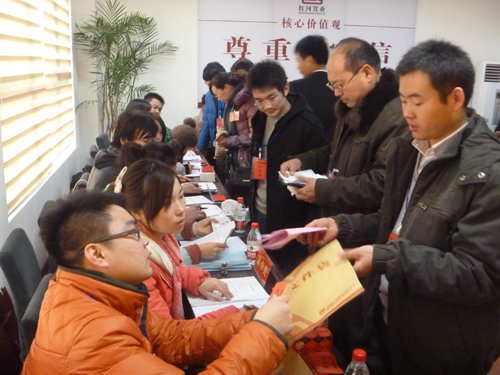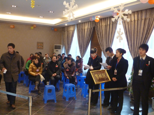 活動(dòng)8點(diǎn)半正式開(kāi)始,一切都按照事先安排好的順序進(jìn)行,將近300組的客戶在短短三個(gè)半小時(shí)的時(shí)間全部簽約完畢。為了不怠慢每一個(gè)客戶,每次叫號(hào)都會(huì)由專人帶領(lǐng),每個(gè)環(huán)節(jié)也都有人幫忙辦理,時(shí)刻提醒客戶要準(zhǔn)備的資料,時(shí)刻告訴客戶下一步我們一起做什么,時(shí)刻讓客戶感覺(jué)到,我們,就在您身邊!客戶能在早早的七點(diǎn)、能在2012年新年的第一天就來(lái)參加我們的活動(dòng),支持我們的工作,相信我們的項(xiàng)目,這份信任,我們也只有用更好的服務(wù),更多的感激和笑容來(lái)回報(bào)他們。