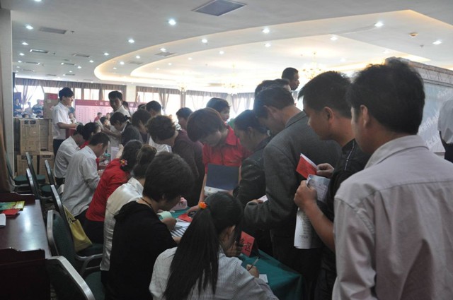 早上8點(diǎn)左右,選房客戶在工作人員的引導(dǎo)下,仔細(xì)的斟酌所選房源。