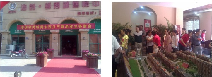 5月26日:滑縣領(lǐng)秀城售樓部舉辦了西瓜節(jié)活動(dòng)。售樓部里聚集了領(lǐng)秀城的新老客戶,大人小孩都踴躍的參加吃西瓜大賽,現(xiàn)場氣氛異?;钴S!