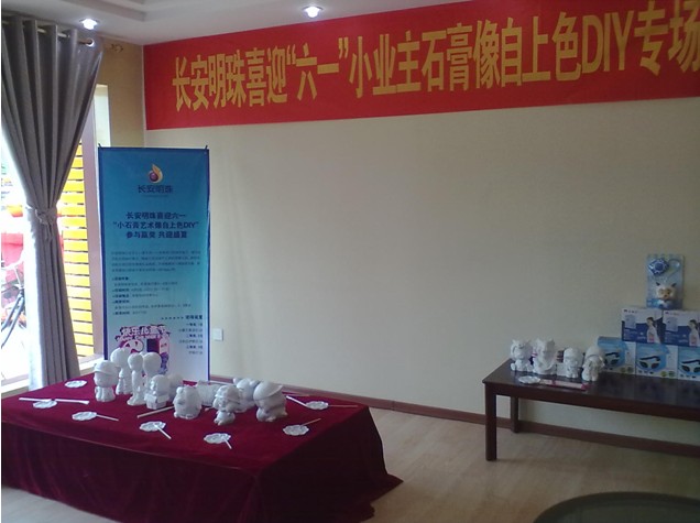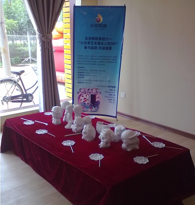 長(zhǎng)安明珠,為了答謝新老客戶對(duì)我項(xiàng)目的大力支持,在兒童節(jié)期間舉行了喜迎“六一”小業(yè)主石膏像自上色DIY專場(chǎng)活動(dòng)。所有10歲以下小朋友在父母的陪同下于下午2:30—5:30期間統(tǒng)一聚集到售房部參加活動(dòng),在比賽結(jié)束時(shí)會(huì)對(duì)表現(xiàn)好的小朋友有一定的禮品獎(jiǎng)勵(lì)。為了使活動(dòng)順利的開(kāi)展,我們提前準(zhǔn)備好了活動(dòng)現(xiàn)場(chǎng),并把所有設(shè)備準(zhǔn)備到位。