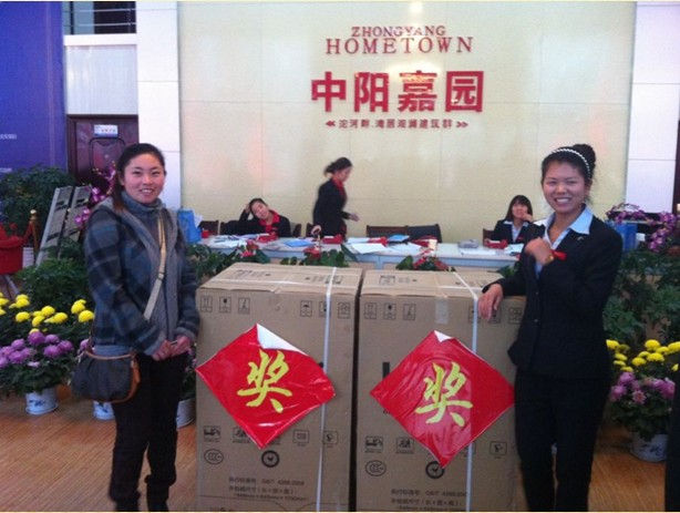 11月3日:永城市中陽(yáng)嘉園售樓部舉行盛大認(rèn)籌活動(dòng)。一大早,到訪的客戶就絡(luò)繹不絕,售樓部工作人員全體出動(dòng),接待來訪、認(rèn)籌客戶,解答客戶疑問,幫助客戶簽約、抽獎(jiǎng),各項(xiàng)工作進(jìn)行的有條不紊,忙的不亦樂乎。 前來認(rèn)籌的客戶準(zhǔn)備抽獎(jiǎng),各種獎(jiǎng)品擺在售樓部門前煞是誘人啊!買房還送家電,讓一向勤儉節(jié)約的永城老鄉(xiāng)怎能不熱情高漲呢!看看這抽獎(jiǎng)場(chǎng)面,能有些意外的驚喜總是好的,,,,,,