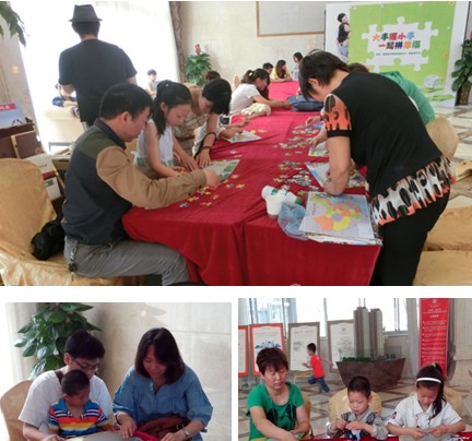 下午3點(diǎn)活動(dòng)正式開始,小朋友們在家長的陪伴下開始一片片地拼中國地圖、卡通圖案等?!跋绕催吘壞芨斓赝瓿膳丁爆F(xiàn)場專業(yè)的工作人員給小朋友們“出謀劃策”,不少家長也按捺不住紛紛參與其中?;顒?dòng)結(jié)束后,小朋友們拼完的成品還可以當(dāng)做禮品帶回家,給孩子們一個(gè)有意義的周末。