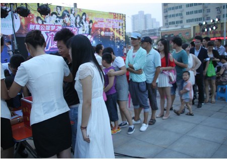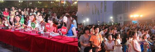 7月13日晚7點:南陽財富公館展示中心廣場上,由南陽百利全財富公館主辦的明星“?!蓖鯛幇再惢馃衢_場。本場比賽共有參賽選手50余組,表演內(nèi)容涵蓋演唱、舞蹈、模仿秀和樂器演奏等。選手中藏龍臥虎,唱歌的歌藝驚人,舞蹈的舞藝超群,比賽熱烈進行,直至當晚十點半方才散場,吸引眾多路人和周邊群眾駐足觀看。