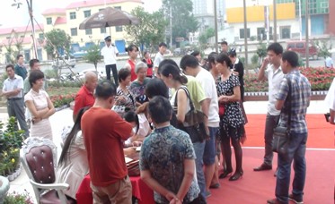 10月1日,活動正式啟幕,上午9點客戶陸續(xù)到訪,置業(yè)顧問們熱情接待,很快南陽藏瓏銷售主管李晶晶就結(jié)出了碩果,成交一套,購房客戶說“一直想買黃金首飾,但想買房子,這個念頭就壓下了,這次南陽藏瓏買房優(yōu)惠又送黃金,真的很劃算,很貼心?!痹谵k理完簽約手續(xù)后,購房客戶又參加福幣禮,面對銀燦燦的硬幣,購房客戶勝券在握,抓起一筆財富后,跟隨南陽藏瓏工作人員,到黃金名店,挑選黃金禮品。活動任然再繼續(xù),其他置業(yè)顧問和客戶也在一片火熱的氣氛中交談著,成交也一直在繼續(xù)著。