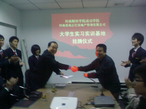 近日,在副院長趙亞宏等領(lǐng)導(dǎo)的帶領(lǐng)下河南財(cái)經(jīng)學(xué)院成功學(xué)院師生50余人來到位于金水路盛潤國際廣場(chǎng)的尚正行公司,正式簽訂大學(xué)生實(shí)習(xí)實(shí)訓(xùn)基地協(xié)議并授牌。在此之前尚正行已與成功學(xué)院連續(xù)合作4年,雙方建立了良好的工作關(guān)系。