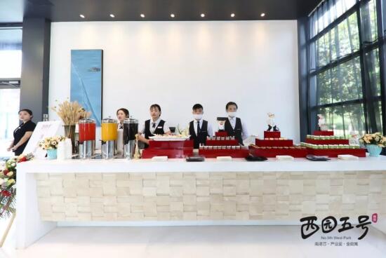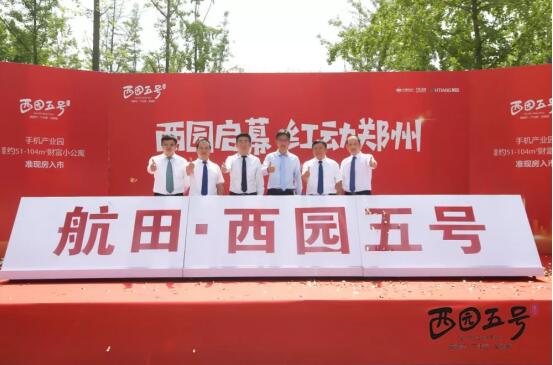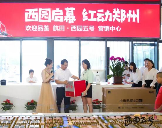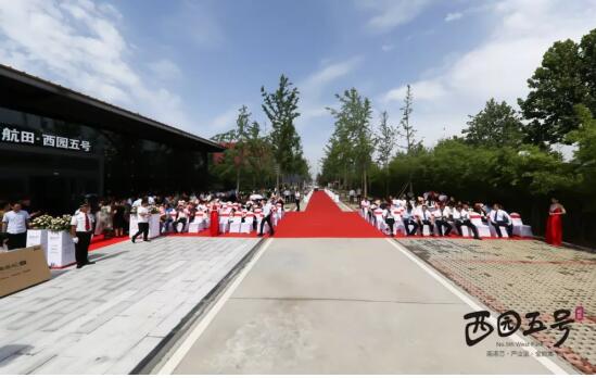 致辭結(jié)束后,彩炮齊鳴時。河南省航田產(chǎn)業(yè)園開發(fā)有限公司總經(jīng)理劉彥山、副總經(jīng)理王丁丁、總經(jīng)理助理曲彥彬、總經(jīng)理助理/營銷策劃中心總監(jiān)谷振雷、財務總監(jiān)路仁乾、尚正行房地產(chǎn)咨詢有限公司事業(yè)三部總經(jīng)理劉兵共同為項目揭幕,航田·西園五號營銷中心正式開啟!