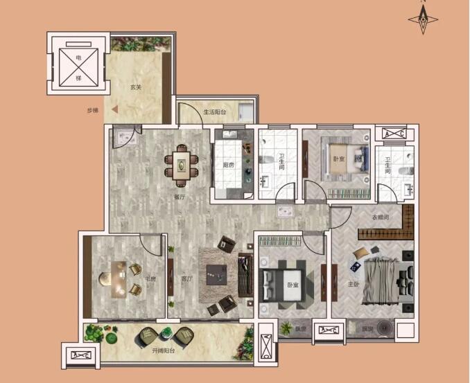 ①一梯一戶的設(shè)計(jì)讓你擁有屬于自己家的電梯廳,不論是做鞋柜、養(yǎng)花或者有小朋友的家庭放雜物,都能發(fā)揮很大的作用;